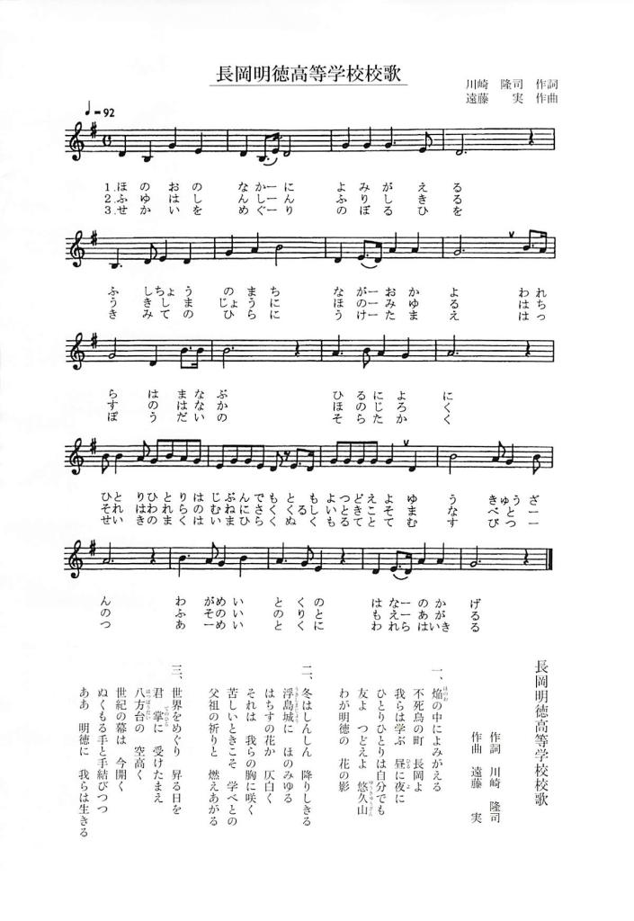 新潟県条例により長岡明徳高等学校と校名変更 校章制定・校旗樹立・校歌制定 平成9年度入学生から単位制による定時制課程として、午前部3学級、夜間部1学級編成 |